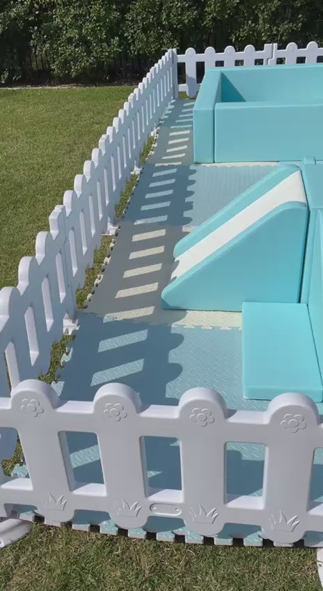 A dreamy blue & white soft play area designed for toddlers aged 0–5 years. Crafted from safe, hygienic materials, it’s perfect for birthdays, family gatherings, and special events — indoors or outdoors.